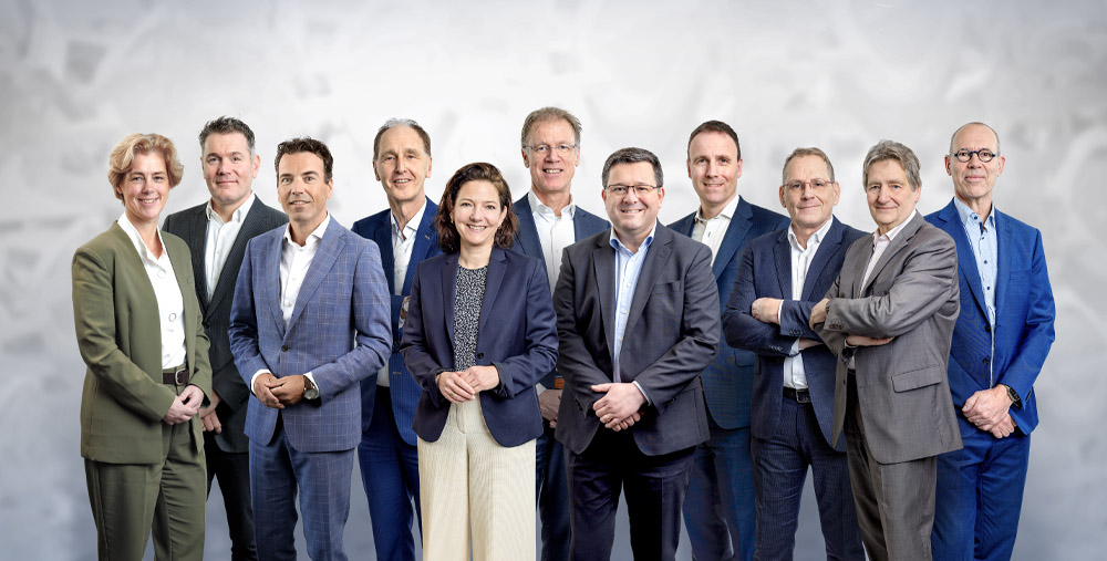 In the picture, from left to right: Else Meijer, Edwin Drost, Aris de Bruin, Henk van Kooten, Elsbeth Tolboom, Edwin Bolwerk (CEO), Anton Janssen (CFO), Marc van Hout (CCO), Wim Rietberg, Riccardo Kovacic, Paul Buisman.